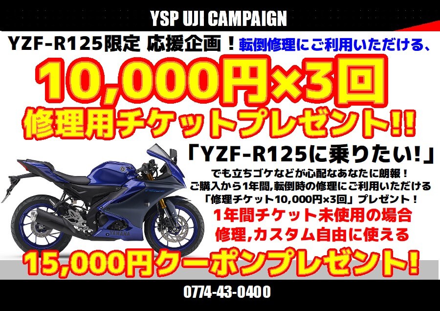1年間修理サポートを未使用で完走の場合、用品やカスタムなど自由に使える15,000円クーポンをプレゼントいたします!