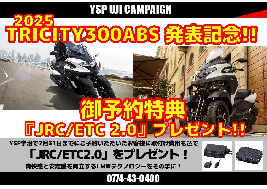 YSP宇治で「TRICITY300 ABS」をご契約いただいたお客様にもれなく!「JRC/ETC車載器2.0(アンテナ分離型)」をプレゼント!