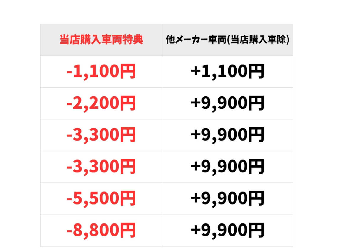 当店購入車両限定のサービス料金をご用意させていただきました。