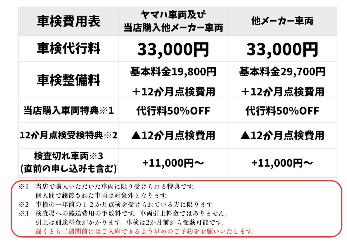 ヤマハ車両及び当店購入車両は今まで通り19,800円